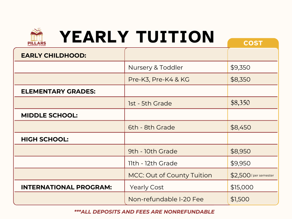 1. Pay in FULL by August 1st of the New School Year to receive a 5% Discount.